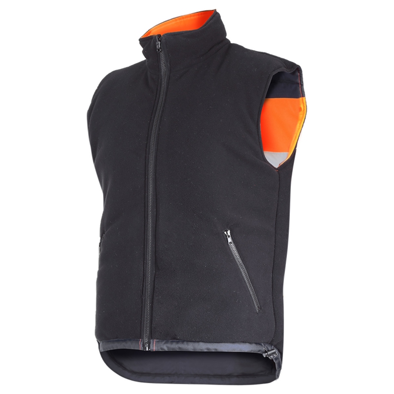 Jego wyjątkową cechą jest dwustronność – jedna strona jest koloru fluorescencyjnego żółtego, a druga czarna wykonana z polaru. Dzięki temu użytkownik może łatwo dostosować się do warunków panujących na placu budowy, w lesie lub w innym miejscu, gdzie praca jest wykonywana.