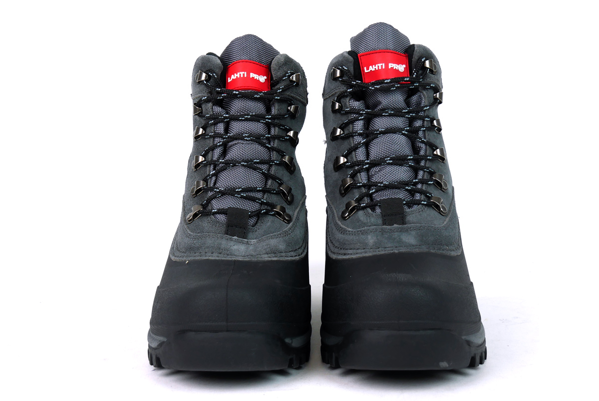 Buty zimowe robocze Lahti Pro L30801 wykonane są ze skóry zamszowej (tkaniny typu oxford). Wnętrze obuwia zostało ocieplone podszewką z dzianiny siatkowej, a wyściółka obuwia została wyłożona wymiennym futerkiem zapewniającym komfort podczas chłodnych dni w okresie jesienno-zimowym. Ponadto buty wyposażone zostały w podeszwę z wysokiej jakości termoplastycznej gumy TPR, która dzięki swoim właściwościom jest odporna na ujemne temperatury oraz nie pęka na mrozie.