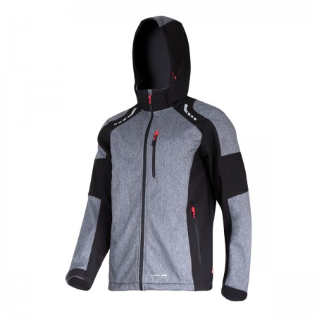 Kurtka Softshell od Lahti Pro wykonana z tkaniny typu Softshell (100% poliester o gramaturze 300 g/m²) z membraną TPU o wodoodporności 8000 mm i oddychalności 3000 g/m²/24h na podszewce z micropolaru o gramaturze 160m/g². Dzięki zastosowaniu różnych materiałów oraz odblaskowego nadruku kurtka jest bardzo dobrze widoczna po zmroku zachowując atrakcyjny design.  Dodatkowa Softshell wyposażony jest w 5 kieszeni, z który 3 są zamykane na suwak oraz odpinany kaptur z wysokim kołnierzem.