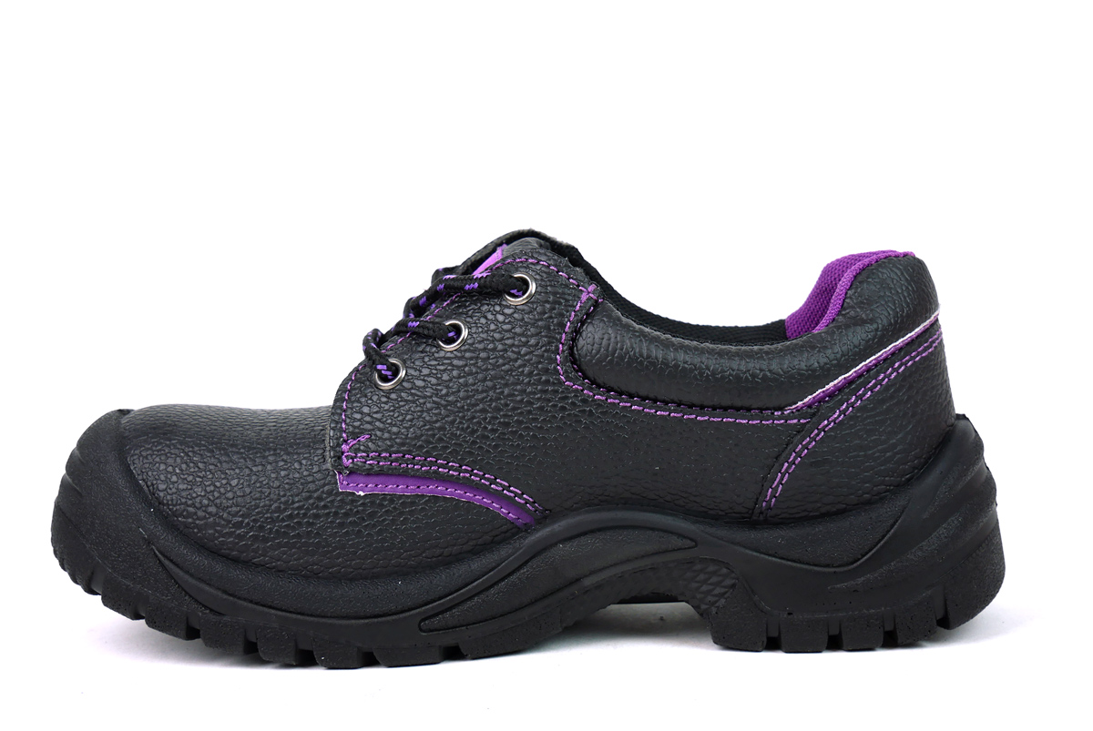 Obuwie damskie spełnia wymagania normy PN-EN ISO 20347 w kategorii obuwia zawodowego O1. Wierz buta wykonany został ze skóry, która zapewnia mu trwałość, solidność, a fioletowe wstawki i przeszycia nadają mu ciekawego wyglądu. Dlatego też ładnie prezentuje się na nodze noszącej kobiety. Dodatkowo wnętrze obuwia zostało wyścielone dzianiną siateczkową o czarno – fioletowej barwie, która zapewnia wygodę i komfort podczas jego użytkowania, a także ładnego wyglądu.