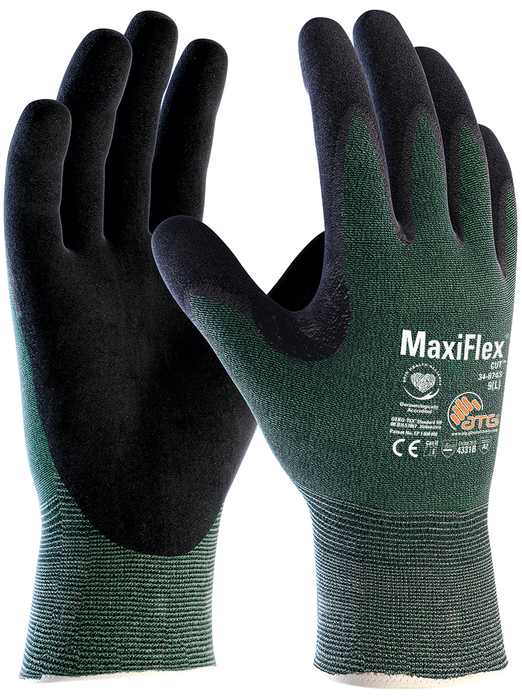 Rękawice antyprzecięciowe ATG MaxiFlex® Cut™ 34-8743 to ultralekkie rękawice z ochrona na przecięcia. Do anryprzecięciowych rękawic zastosowano włókna o wysokiej wytrzymałości, które nadają różne stopnie odporności na przecięcia. Przeznaczone są do pracy w suchym i brudnym środowisku, w którym dłonie narażone są na przecięcia ostrymi przedmiotami. Rękawice charakteryzują się wysokim dopasowaniem, dzięki czemu są bardzo precyzyjne.