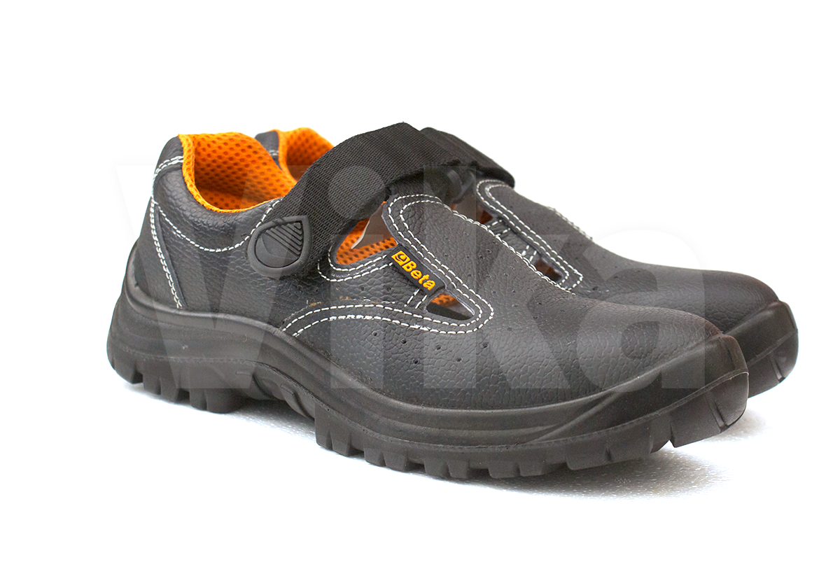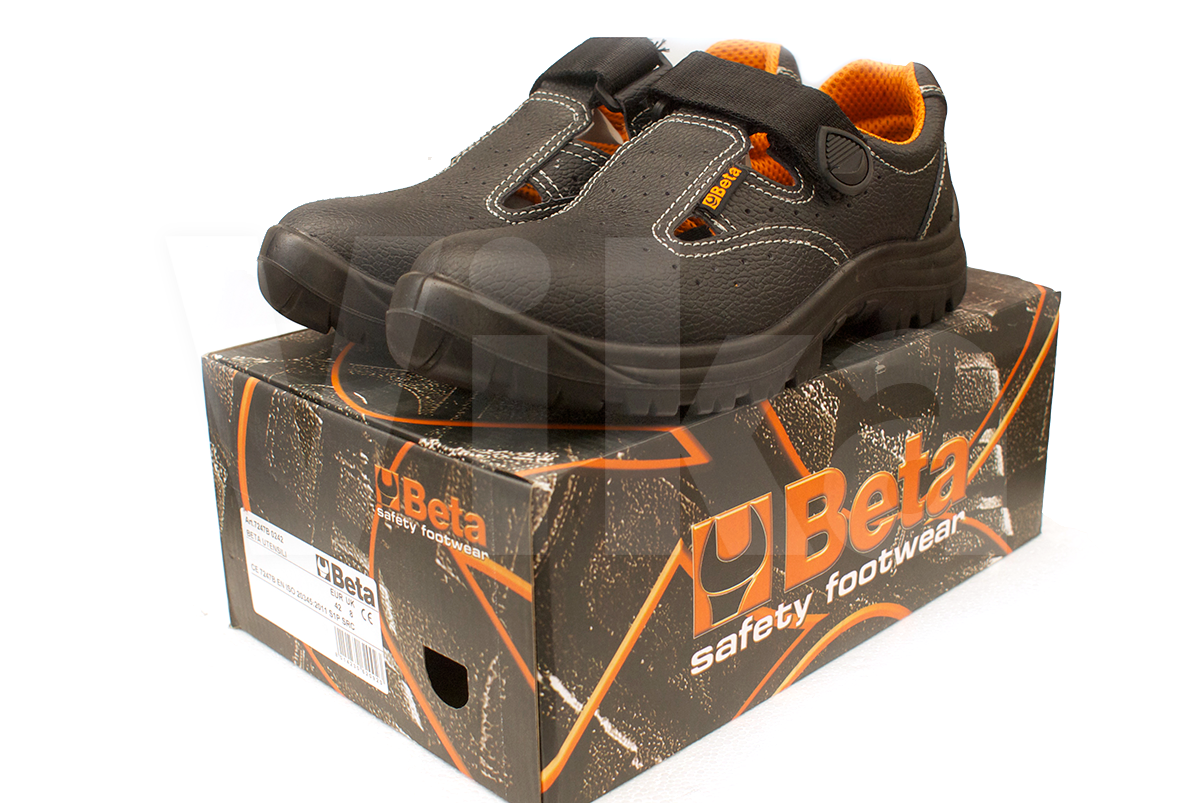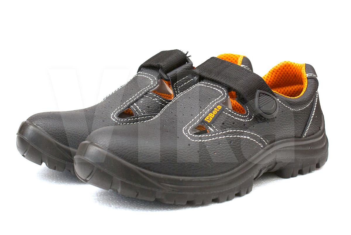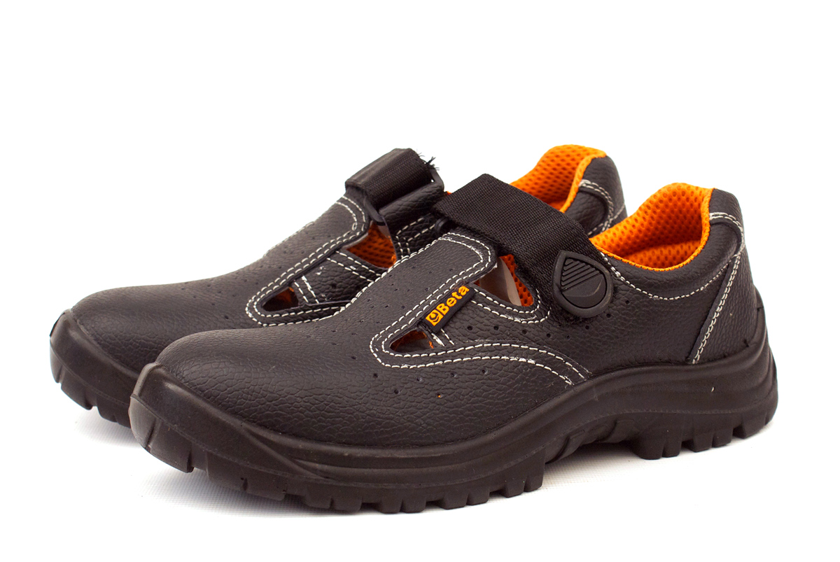 Sandały bezpieczne skórzane marki BETA 7247BK. Buty ochronne są perforowane, mają podnosek stalowy oraz kompozytową wkładkę antyprzebiciową.