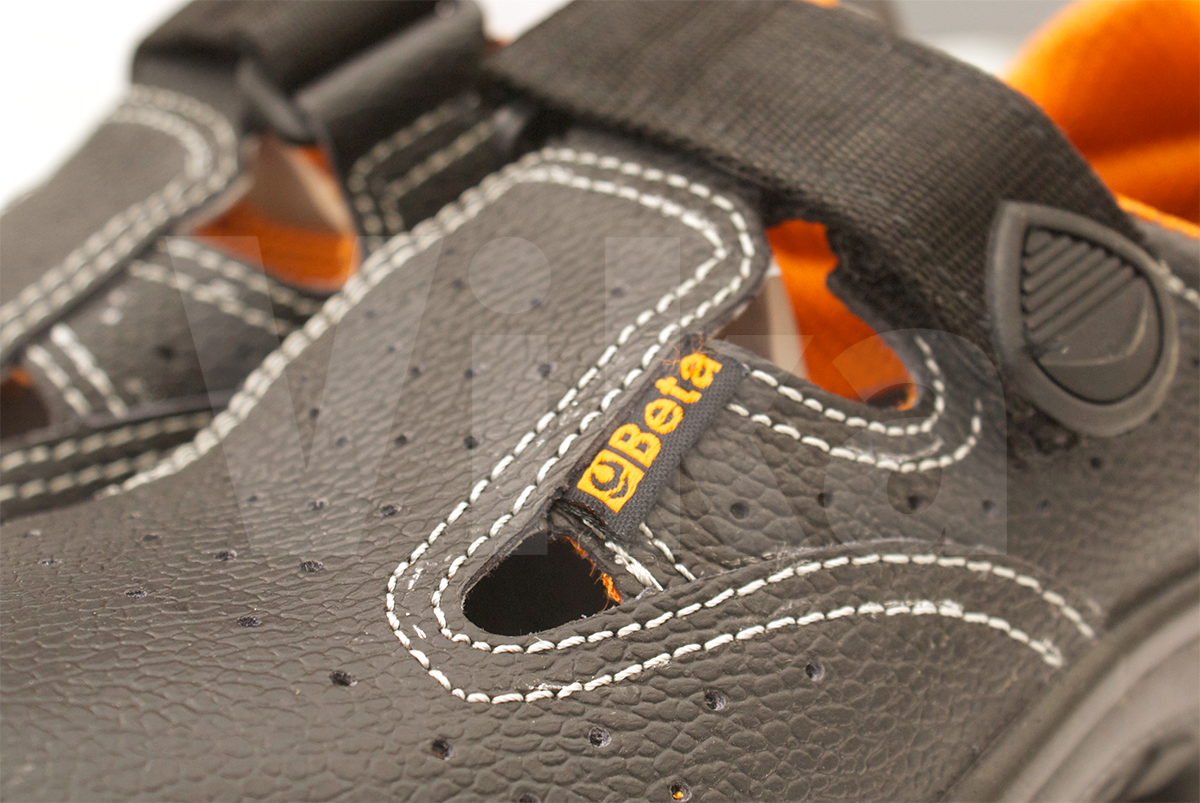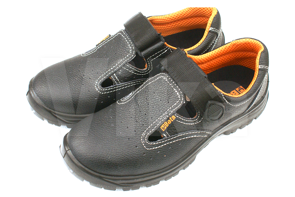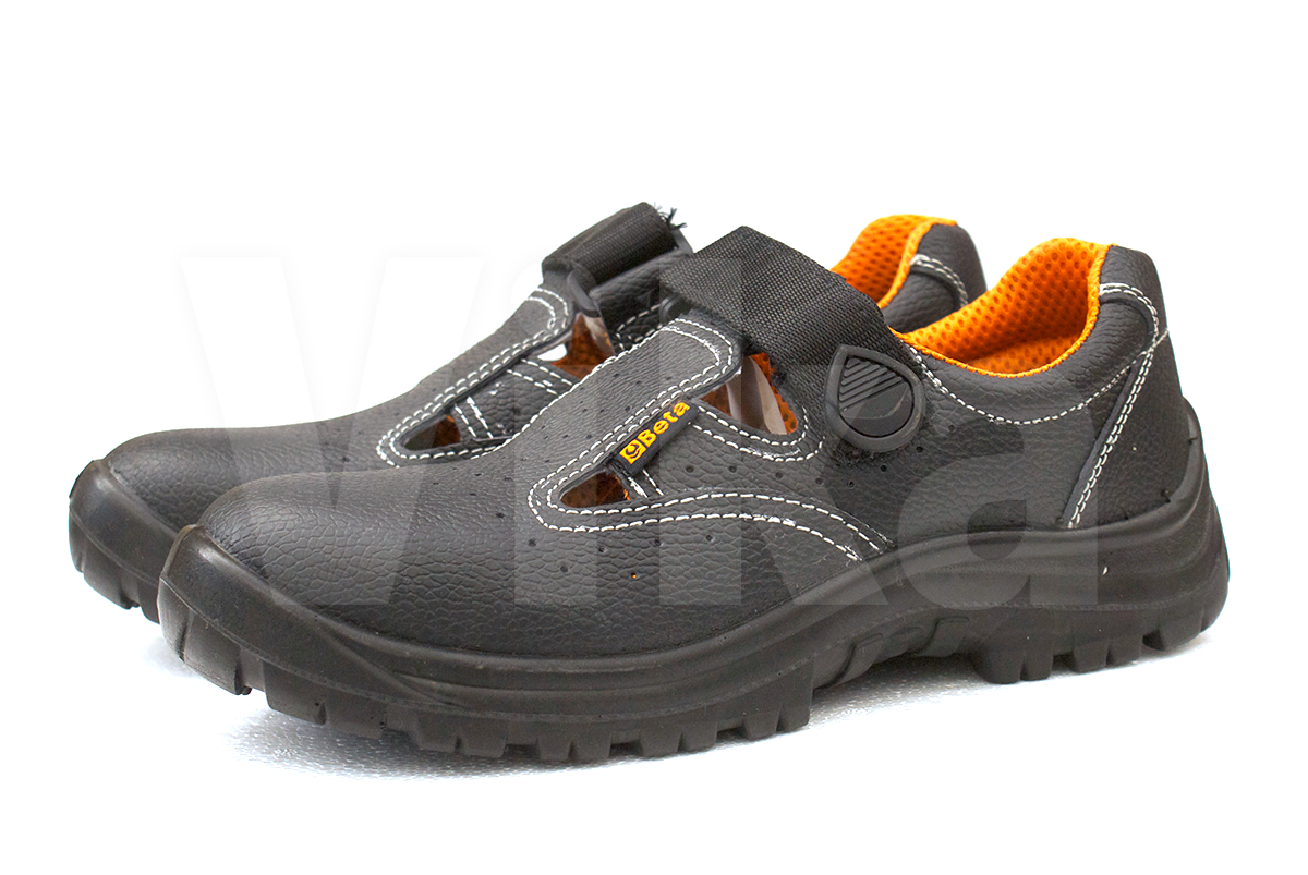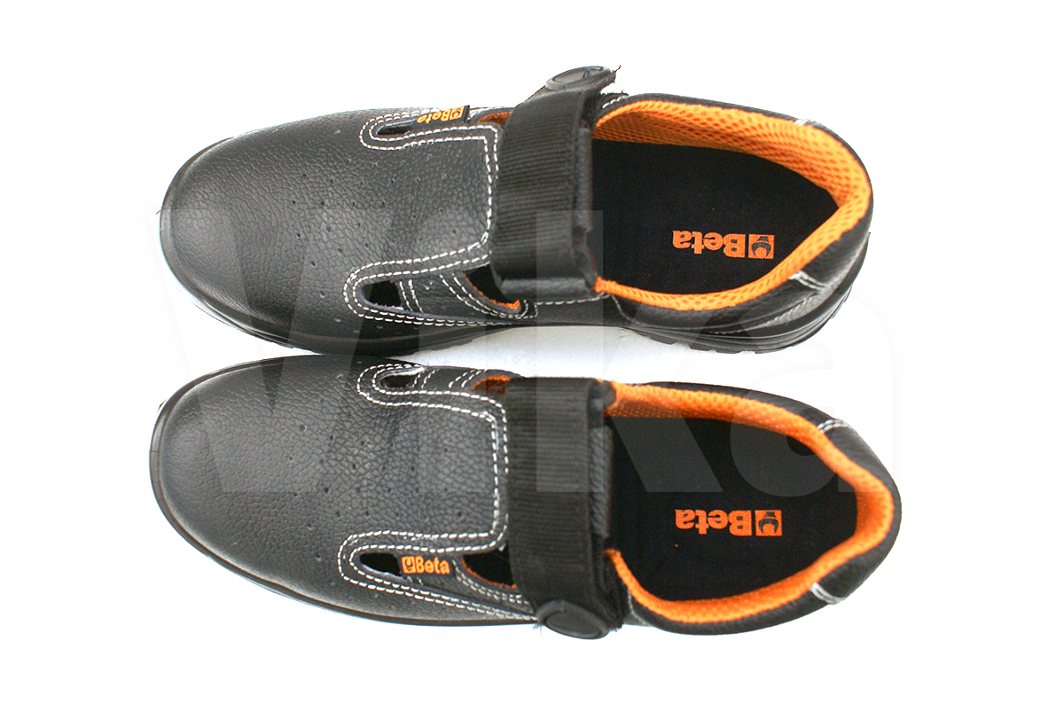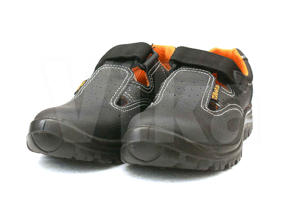 Sandały bezpieczne skórzane marki BETA 7247BK. Buty ochronne są perforowane, mają podnosek stalowy oraz kompozytową wkładkę antyprzebiciową.
