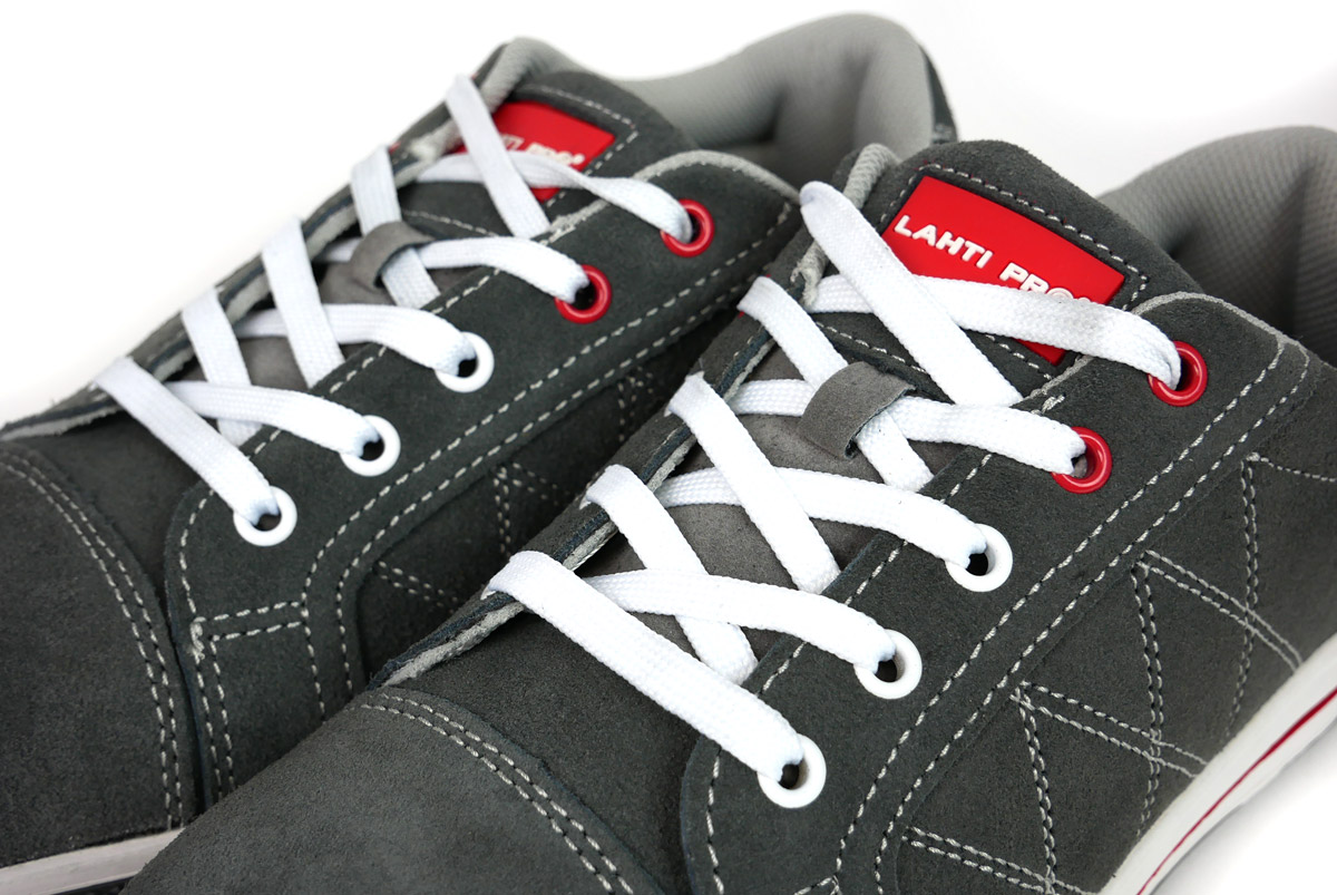 Trampki robocze Lahti Pro L300407 wykonane są ze skóry zamszowej. Są to półbuty stylizowane na tenisówki.