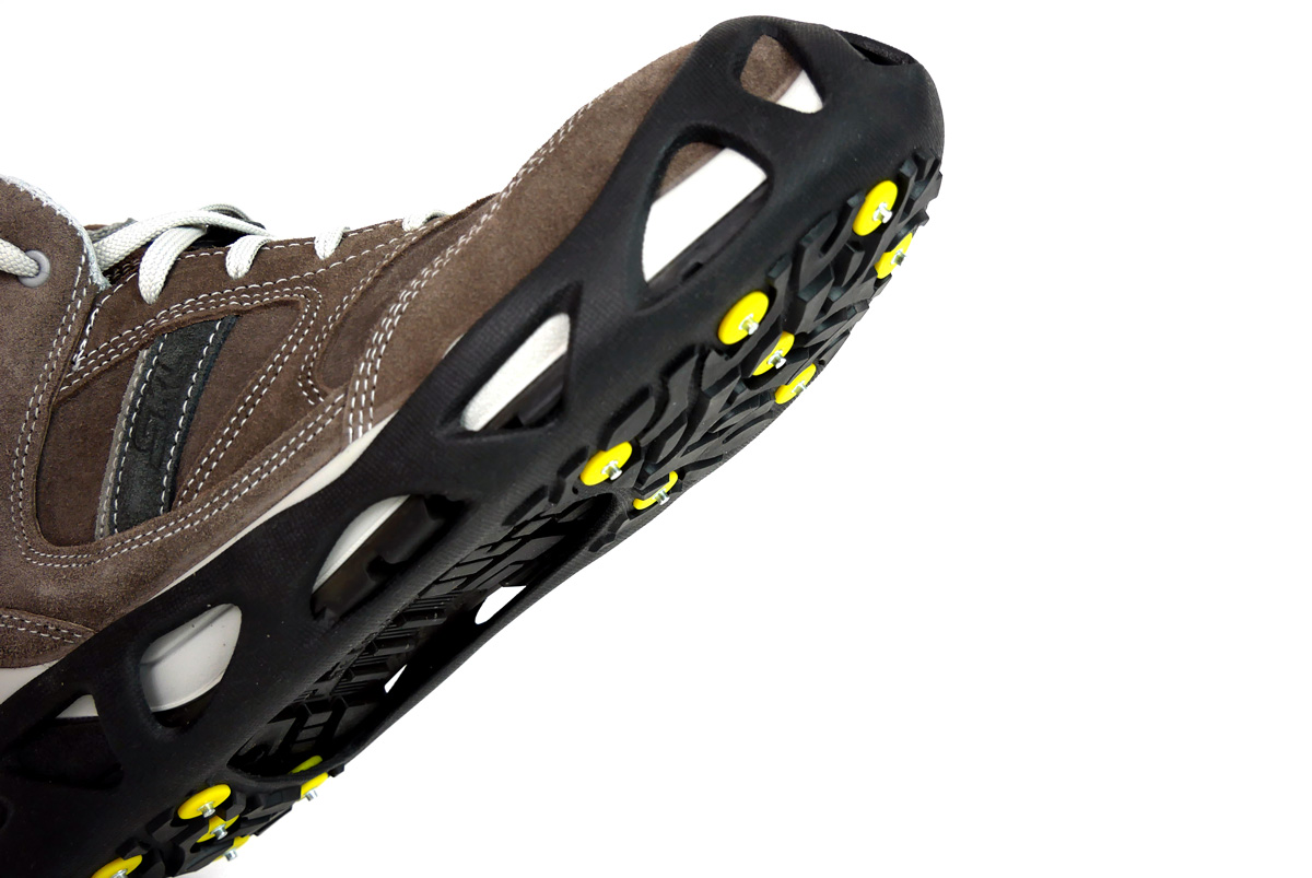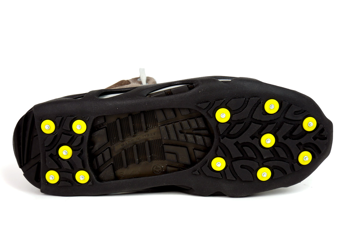 Uniwersalne nakładki antypoślizgowe na buty nabijana ćwiekami. Nakładka antypoślizgowa skuteczna jest na bardzo śliskich nawierzchniach pokrytych lodem. Odporna do -40°C.  Nakładka wykonana z elastycznej gumy dzięki czemu jest szybka i łatwa w zakładaniu. Jest to uniwersalna nakładka antypoślizgowa pasująca do każdego modelu obuwia ochronnego lub obuwia cywilnego. Jej dużą zaletą jest łatwość w przechowywaniu, na spokojnie można schować w dużej kieszeni lub przywiesić do plecaka.